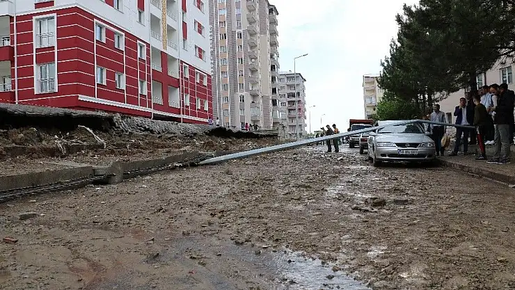 Sivas’ta etkili olan yağmur ve dolu sonrası bir sitenin istinat duvarı çöktü. Çökme sırasında duvarın önünde kimsenin bulunmaması olası bir faciayı önledi.