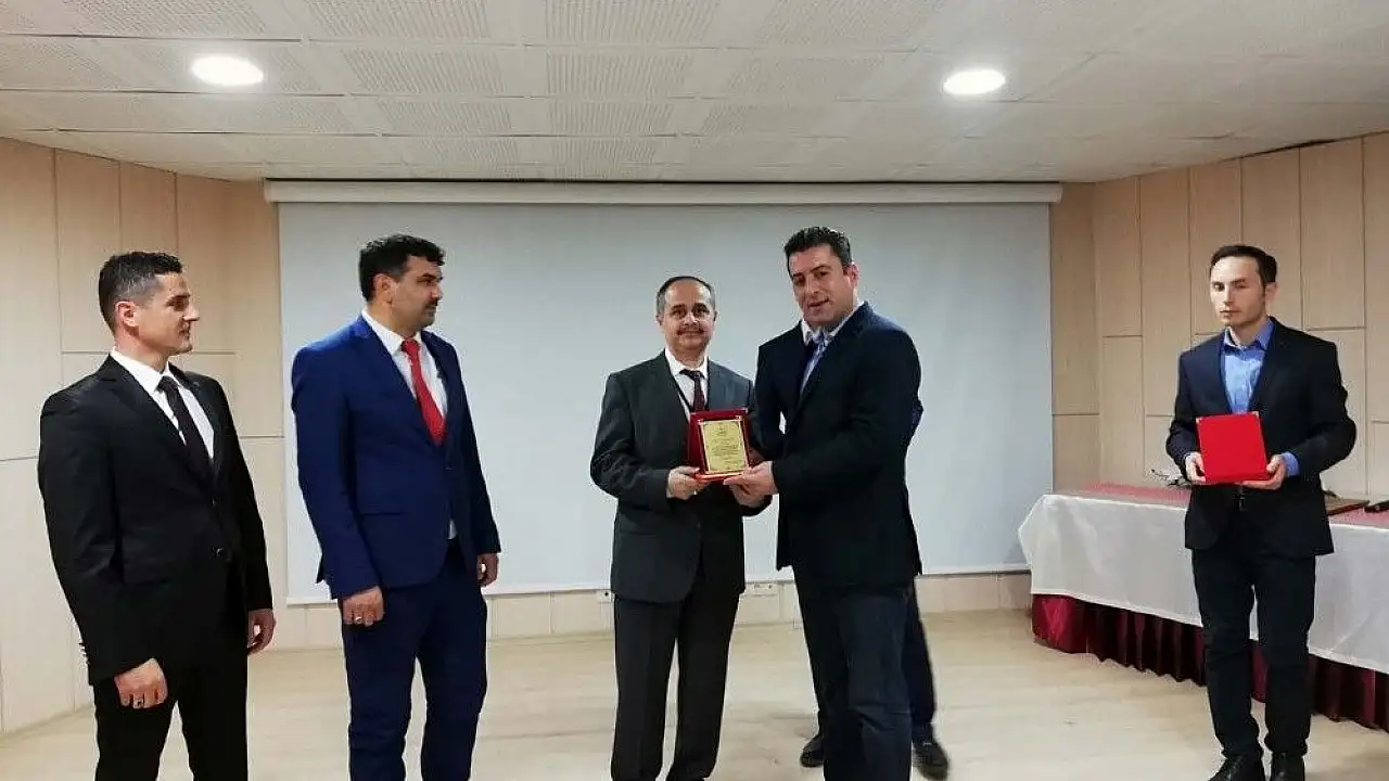 Savaşçı, konuşmasının ardından eğitimcilere plaket takdim etti.
