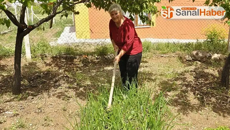 Arguvan ilçesinde yaşayan ve korona virüs nedeniyle sokağa çıkma kısıtlaması bulunan 70 yaşındaki Hatice İncesu, kısıtlamadan dolayı evde sıkıldı. Evin bahçesinde toprakla uğraşan ve sebze eken yaşlı kadın, zamanını faydalı şekilde değerlendirdiği gibi bahçede hareket etme fırsatı da bulmuş oluyor.