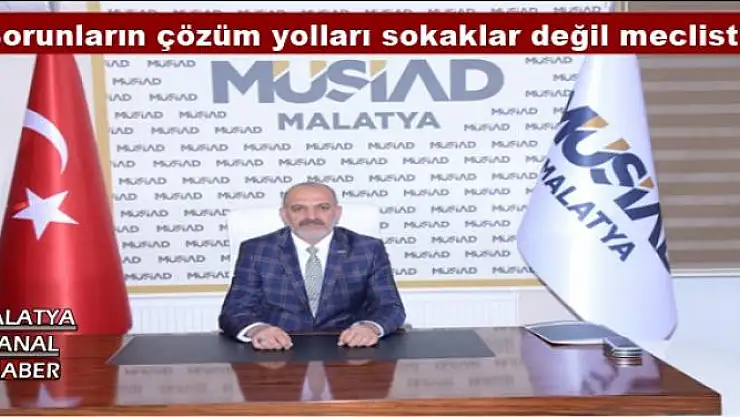 MÜSİAD Malatya Şube Başkanı Hüseyin Kalan, CHP tarafından başlatılan Adalet Yürüyüşünü değerlendirerek, "Her zaman olduğu gibi bugün de sorunların çözüm yolları sokaklar ve asfalt yollar değil milletin kendilerini temsil etsin diye temsilcilerini seçip gönderdiği Türkiye Büyük Millet Meclisidir” dedi.