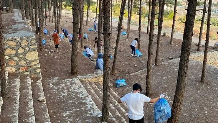 Adıyaman´da bir gurup gencin sosyal medya üzerinden başlattığı çöp toplama etkinliği kapsamında ormanlık alandaki çöpler tek tek toplandı.