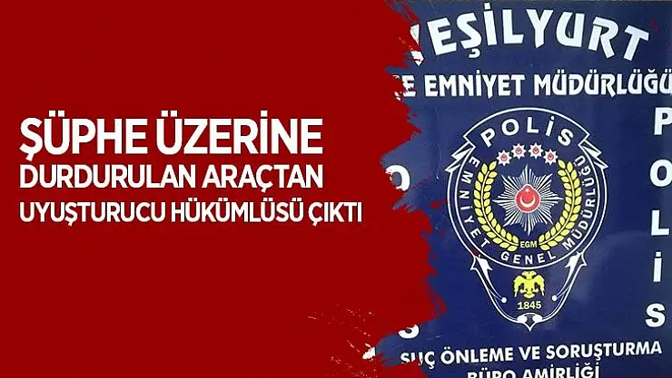 Edinilen bilgiye göre, Yeşilyurt İlçe Emniyet Müdürlüğü Suç Önleme ve Soruşturma Büro Amirliği görevlilerince yapılan çalışmalarda Yeşiltepe Hoca Ahmet Yesevi Mahallesi´nde şüphe üzerine durdurulan araçtaki O.M. isimli şahsın araması olduğu belirlendi.