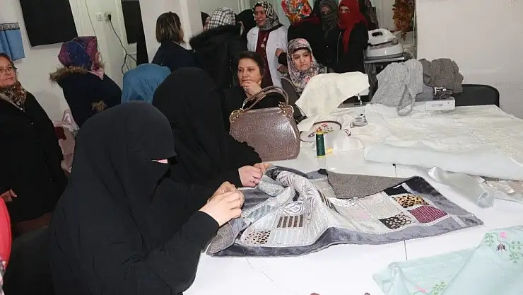 Kent merkezinde dikiş ve nakış kurslarına kayıt yaptıran 70 Suriyeli kadın hem meslek öğreniyor hem de aynı zamanda yaptıkları ürünler sayesinde para kazanıyorlar.