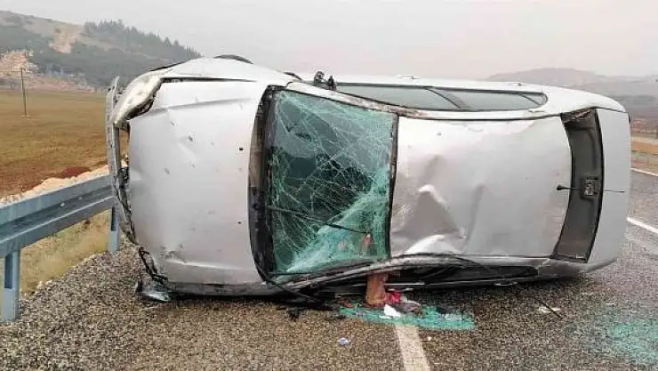 Adıyaman Gaziantep Karayolu üzerinde takla atan otomobil ters döndü.