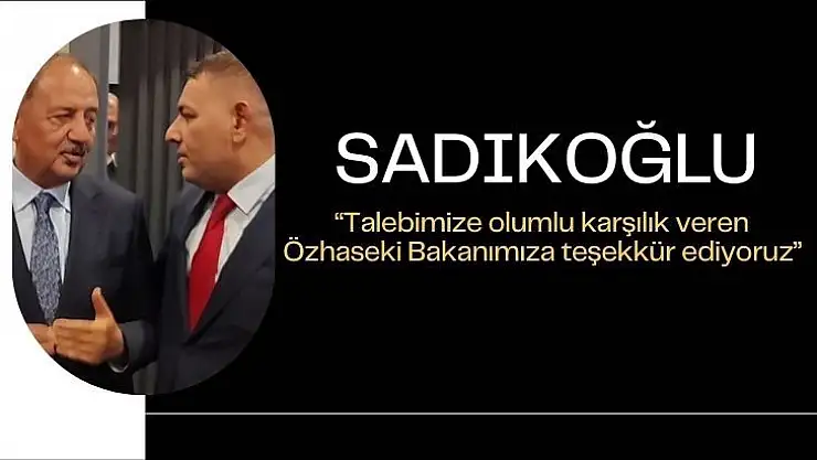 Sadıkoğlu: 'Talebimize olumlu karşılık veren Özhaseki Bakanımıza teşekkür ediyoruz'