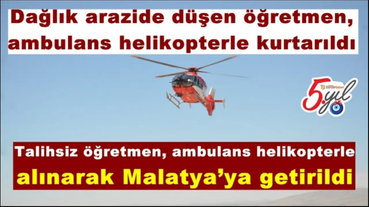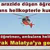 Talihsiz öğretmen, ambulans helikopterle alınarak Malatya´ya götürüldü