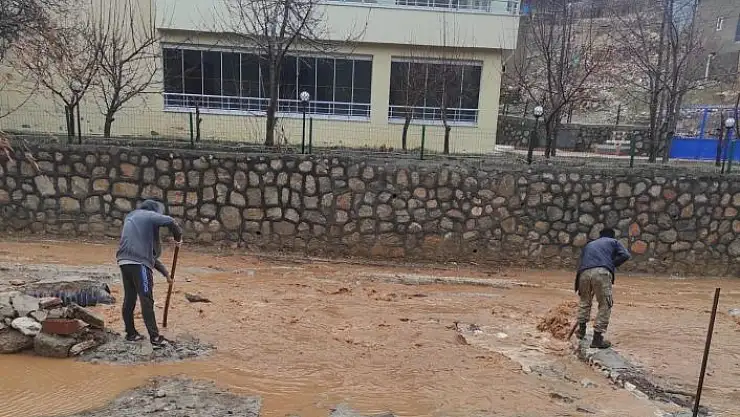 Kahramanmaraş´ın Elbistan ilçesine bağlı Karahasanuşağı Mahallesi´nde aşırı yağış ve eriyen karların, dereyi taşırması sonucu yollar göle dönerken evlerin bahçelerini de su bastı.