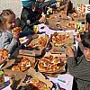 Tatbikat sonrası öğrencilerin pizza keyfi