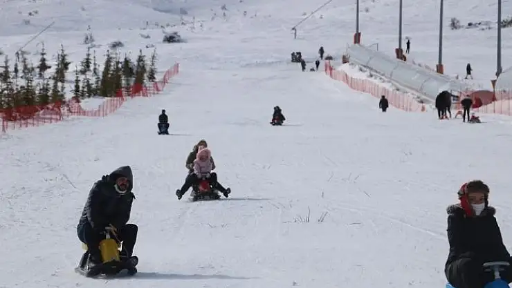 Uzaktan eğitime verilen 3 haftalık ara ve sokağa çıkma kısıtlamasının ardından tatilciler Yıldız Kayak Merkezi´ne akın etti.