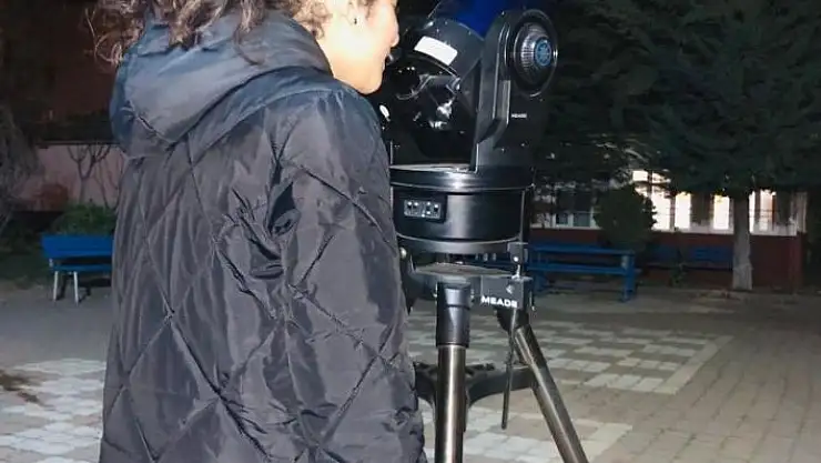 'Teleskopla ayı ilk kez izleyen öğrenciler büyük heyecan yaşadı'