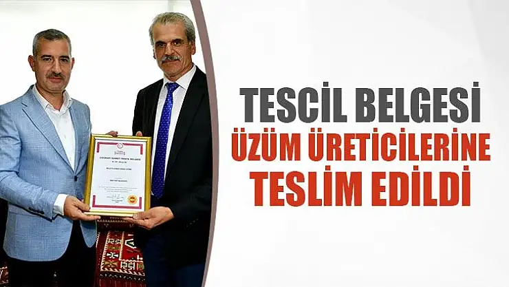 Tescil belgesi üzüm üreticilerine teslim edildi