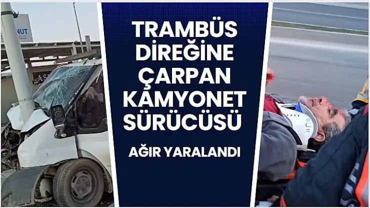 Trambüs direğine çarpan kamyonet sürücüsü ağır yaralandı