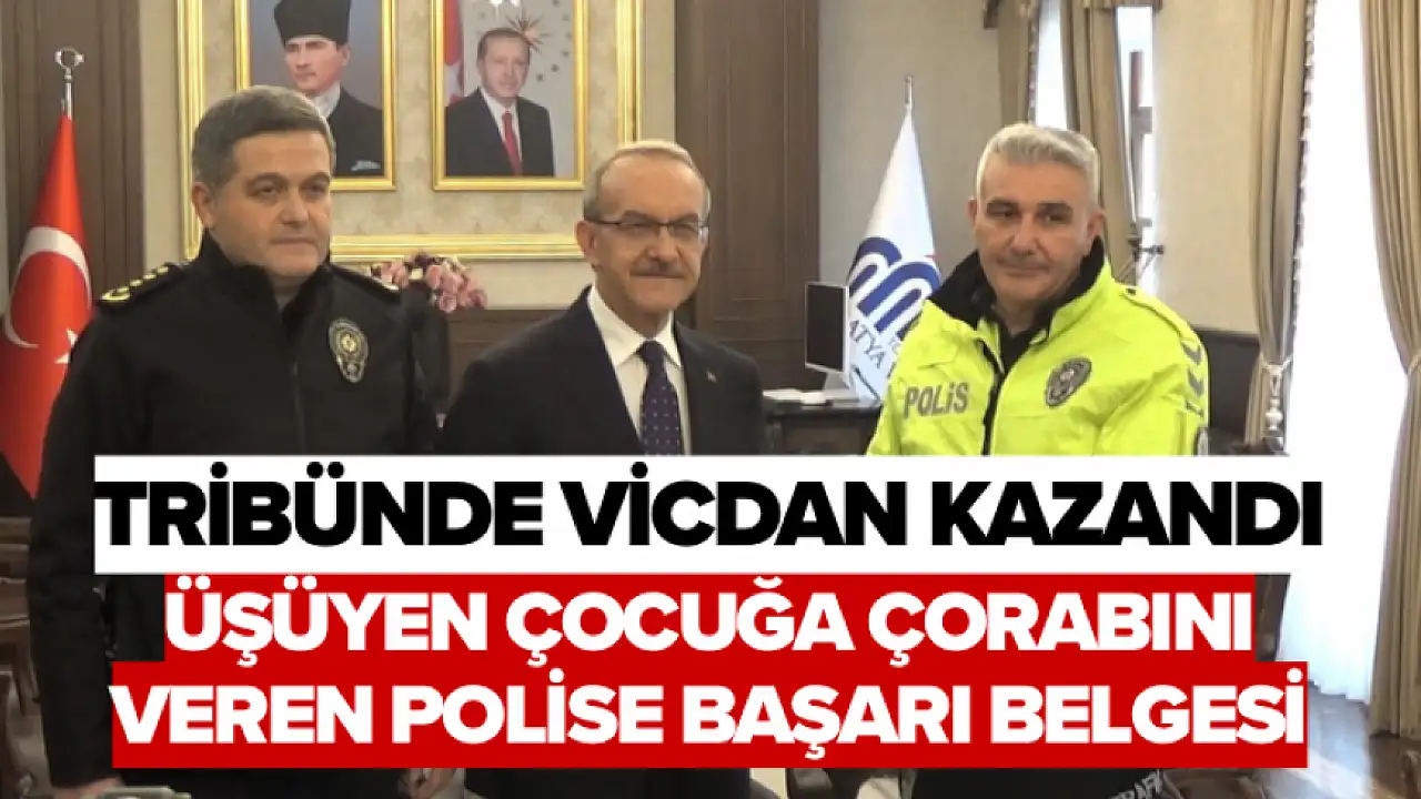 - Tribünde Vicdan Kazandı: Üşüyen Çocuğa Çorabını Veren Polise Başarı Belgesi