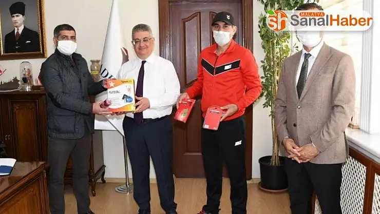 Türkiye Futbol Antrenörleri Derneği (TÜFAD) Adıyaman Şubesi Başkan Yardımcısı Erkan Gazi Çağır ve Genel Sekreter Mehmet Güneş Adıyaman’ın protokol üyelerine spor malzemesi dağıttı.