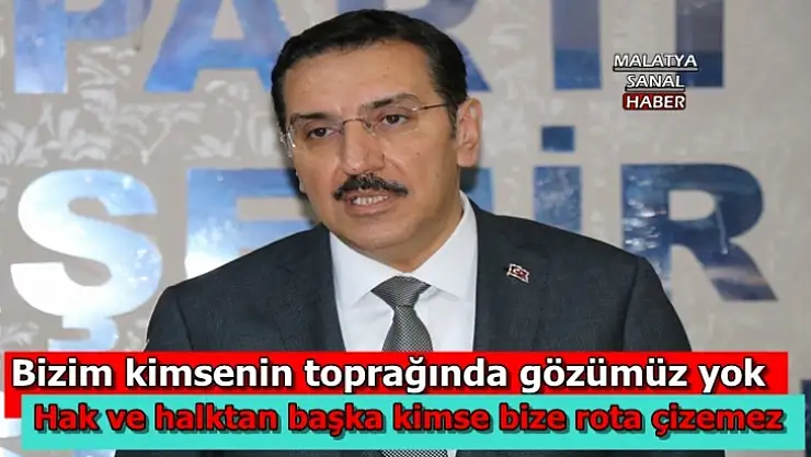 Gümrük ve Ticaret Bakanı Bülent Tüfenkci, "Bizim kimsenin toprağında gözümüz yok Suriye'nin toprak bütünlüğünden yanayız" dedi.