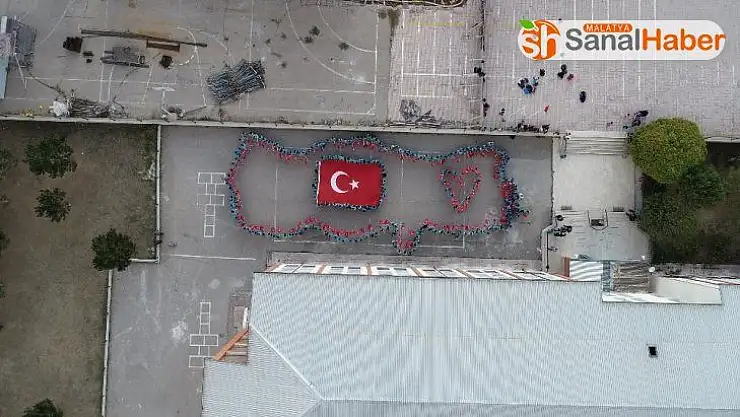Sivas’ta ortaokul öğrencileri ülkemizin Barış Pınarı Harekatında elde ettiği diplomatik zafere karşı bedenleri ile Türk bayrağı koreografisi yaparak destek verdi.