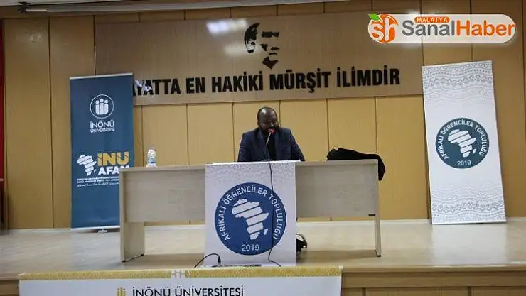Malatya İnönü Üniversitesi Afrikalı Öğrenciler Topluluğu tarafından üniversitenin Hoca Ahmet Yesevi Salonu’nda Türkiye’de ve Malatya’da Afrikalı Öğrenci Olmak" konulu konferansı düzenlendi. Konferansa İnönü Üniversitesi Afrika Araştırmaları Merkezi Müdürü Dr. İsmail Söylemez, Türkiye’deki Afrikalı Öğrenciler Federasyonu Başkanı Younous Adoasoti, İnönü Üniversitesi Uluslararası Öğrenci Ofisi Başkanı Doç. Dr. Niyazi Özer, akademik ve idari personel ile Afrikalı öğrenciler katıldı. İnönü Üniversitesi Uluslararası Öğrenci Ofisi Başkanı Doç. Dr. Niyazi Özer, konferansın açılış konuşmasında, Türkiye’nin Afrikalı öğrenciler için pek çok açıdan uygun bir ülke olduğunu belirterek, "Ülkemizin pek çok güzel noktası var. Bunlar, hava, iklim, yemek ve kültürdür. Böyle bir ülkede yaşamak ve sizin gibi dostları da burada görmek güzel duygu" dedi.