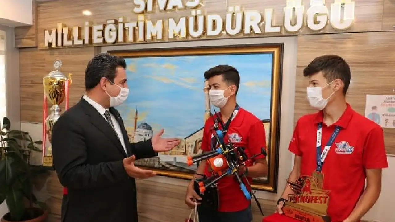 Sivas Bilişim Teknolojileri Mesleki ve Teknik Anadolu Lisesi´nde eğitim gören ve geliştirdikleri İnsansız Hava Aracı (İHA) ile TEKNOFEST Havacılık, Uzay ve Teknoloji Festivali kapsamında Gaziantep´te düzenlenen Türkiye Bilimsel ve Teknik Araştırma Kurumu (TÜBİTAK) Liseler Arası İHA yarışmasında birinci olan öğrenciler İl Milli Eğitim Müdürü Ebubekir Sıddık Savaşçı´yı ziyaret etti.