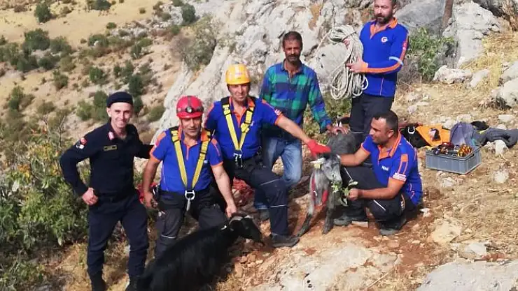 Adıyaman´da, 350 metrelik uçurumda 3 gün boyunca mahsur kalan 2 keçi AFAD ekiplerinin çalışmalarıyla kurtarıldı.