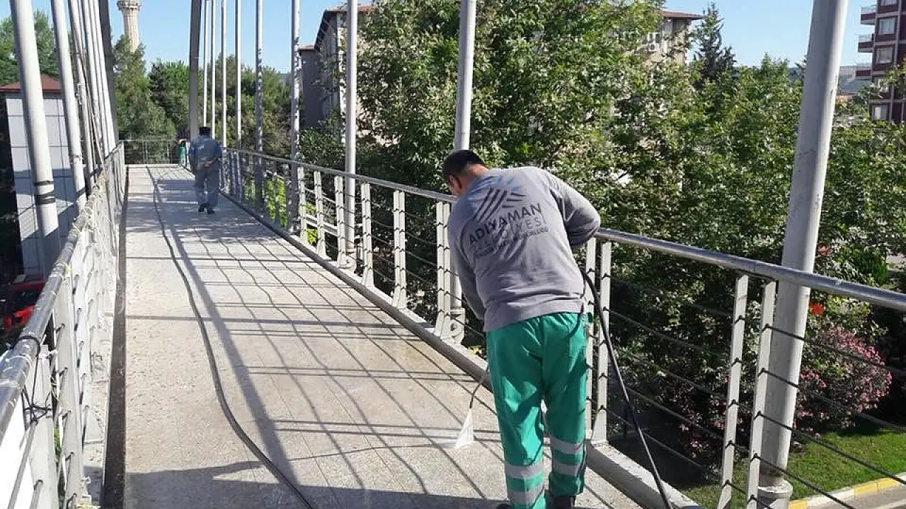 Adıyaman Belediyesi Temizlik İşleri Müdürlüğü ekipleri, şehir merkezinde bulunan üst geçitlerde temizlik çalışması yaptı.