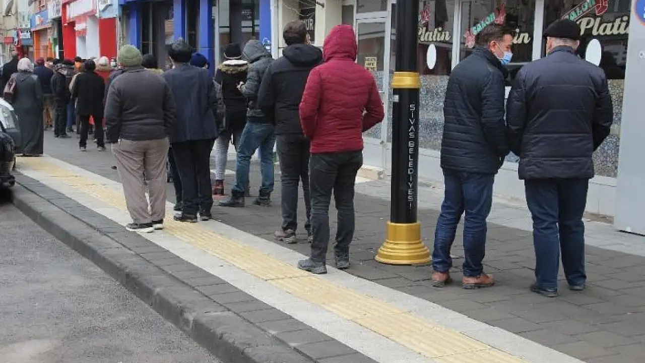 Sivas´ta vatandaşlar, uygun fiyata et alabilmek için Et ve Süt Kurumunun önünde yaklaşık 50 metre uzunluğunda kuyruk oluşturdu. Bu sırada sosyal mesafe de unutuldu.
