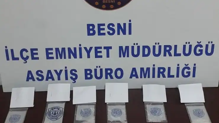 Edinilen bilgilere göre, Narkotik Suçlarla Mücadele Şube Müdürlüğü ekipleri ile Besni ilçe Emniyet Müdürlüğünün yapmış oldukları denetimler kapsamında durumlarından şüphelenilerek durdurulan araçta arama yapıldı. N.A., A.P., B.Ö., B.Z, A.Ö., O.Y. ve R.S., isimli kişilerin içerisinde bulunduğu araçtan 10 paket halinde alüminyum folyo sarılı toplam 7,33 gram metamfetamin, üç paket halinde ise, toplam 7,05 gram sentetik kannabinoid maddesi ele geçirildi. Uyuşturucu maddeleri muhafaza altına alınırken şahıslardan N.A., ile R.S., isimli 2 şahıs gözaltına alındı. Emniyette ifadeleri tamamlanan N.A., ile R.S., adliyeye sevk edildi. Şahıslardan N.A., çıkarıldığı mahkemece tutuklanarak cezaevine gönderildi. Öte yandan polis ekipleri A.P., B.Ö., B.Z, A.Ö., ve O.Y., isimli şahıslara içmek için uyuşturucu madde bulundurmaktan haklarında yasal işlem gerçekleştirdi.