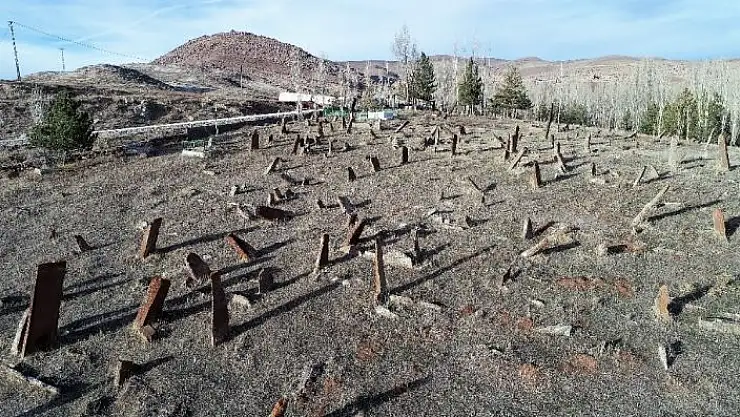 Sivas´ın Karayün köyünde yer alan yaklaşık 4 asırlık mezarlıktaki dev mezar taşları oluşturdukları görüntü dikkat çekiyor.