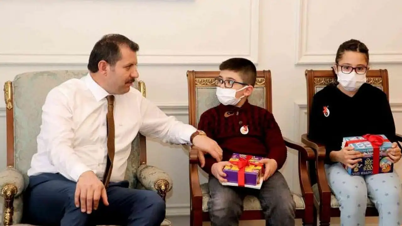 2021 yılında 179 kitap okuyan Selçuk Ortaokulu 5. sınıf öğrencisi Afra Şerare ve 2022 Ocak ayında 41 kitap ile en fazla kitap okuyan Cumhuriyet İlkokulu 2. sınıf öğrencisi Ahmet Zeki ile bir süre sohbet eden Ayhan, öğrencileri tebrik ederek hediye verdi.