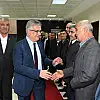 Vali Pekmez’i ATSO hizmet binası girişinde, Ticaret ve Sanayi Odası Başkanı Mustafa Uslu ve yönetim kurulu üyeleri tarafından karşılandı.