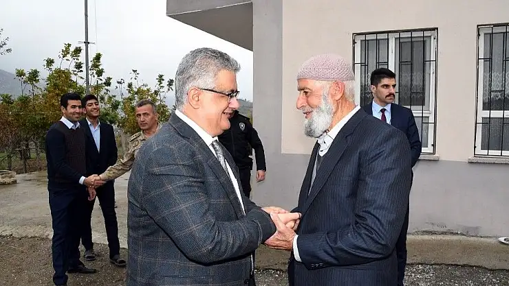 Çatbahçe Köyüne gelişinde Vali Aykut Pekmez’i Şehit Piyade Er Tahir Yetkin’in babası Abdullah Yetkin ve şehidin kardeşleri karşıladı.