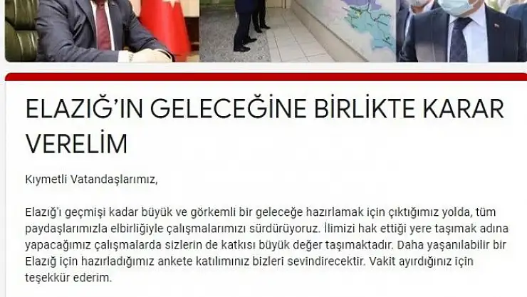 'Vali Erkaya Yırık´tan ''Elazığ´ın geleceğine birlikte karar verelim'' anketi'