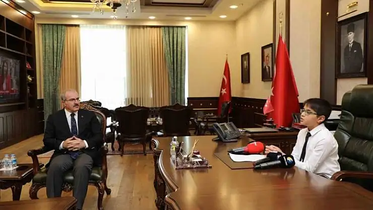 23 Nisan Ulusal Egemenlik ve Çocuk Bayramı dolayısıyla temsili olarak Elazığ Valiliği makamına oturan öğrenci Yuşa Ayberk Yıldırım, 'Tü