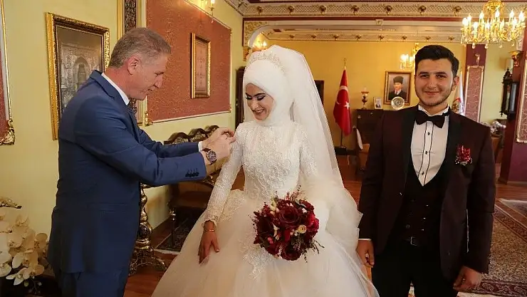Gelin ve damat ile sohbet eden Vali Gül, hayata dair bazı tavsiyelerde bulundu. Gül, "Bu mutlu günlerini bizlerle paylaşan ve valilik makamında anlarını ölümsüzleştiren çiftimize bir ömür mutluluklar diliyorum” şeklinde konuştu.
