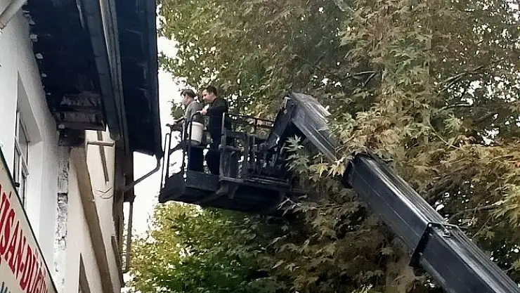 Gölbaşı ilçe merkezinde vatandaşlar evlerinin çatısını kış öncesi temizliyor. Kış aylarında yağmur ve kar yağışında tıkanma ve çökme olmaması için oluklar iş makinelerinin yardımı ile temizleniyor.