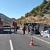 Kazada kamyonda bulunan eşyalar yola savrulurken, trafik bir müddet tek şeritten verildi.