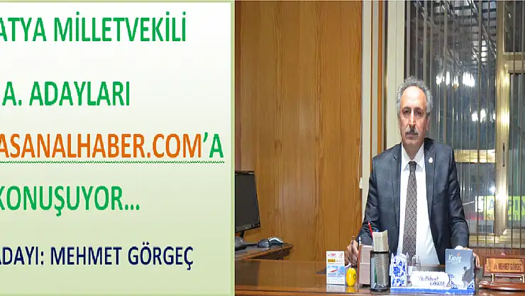 Ak Parti Malatya Milletvekili A. Adayı Av. Mehmet Görgeç ile bir söyleşi gerçekleştirdik. Av. Mehmet Görgeç'ten röportajın başlangıcında kendisini tanıtmasını istedikten sonra siyaset ve Malatya üzerine düşüncelerini ve niçin Ak Parti'de A. Adayı olmak istediğini sorduk.