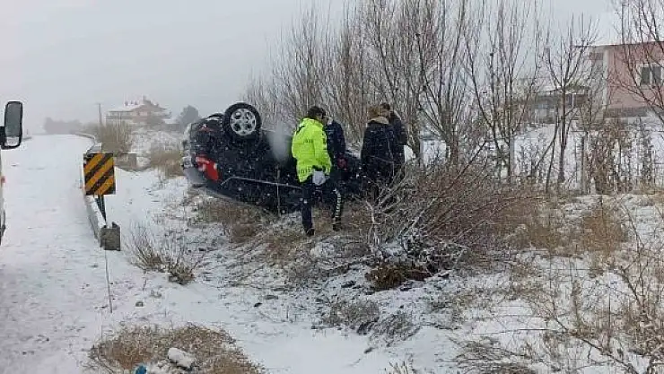 Kaza, Kayseri - Malatya karayolu Sivas´ın Gürün ilçesi Suçatı köyü geçişinde meydana geldi. Kazada, Malatya istikametine giden N.Ö.(30) sevk ve idaresindeki 14 TY 1462 plakalı Ford marka otomobil yağan karın etkisiyle zeminin kaygan olması sonucu yoldan çıkarak takla attı. Yaralanan araç sürücüsü ambulansla Gürün Devlet Hastanesine kaldırıldı. Sürücünün hayati tehlikesinin bulunmadığı belirtildi.