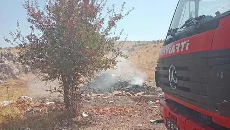 Adıyaman´da, ormanlık alan yakınlarına dökülen ve daha sonra ateşe verilen atık malzemelerden çıkan alevler ormanlık alana sıçramadan itf
