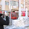 Sivas’ta bir kaç gündür aralıklarla yağan kar yağışı kenti beyaza bürüdü. Mevlana mahallesinde esnaflık yapan Murat Yıldırım ise Mevlana Caddesi üzerinde bulunan iş yerinin önüne şehrin simgelerinden olan 850 yıllık tarihi Çifte Minareli Medresenin benzerini kardan yapmayı denedi. Yıldırım, 4 saatlik çalışma ile tarihi medresenin benzerinin bir kısmını tamamlamayı başardı. Ancak çevrede yeterli kar kalmayınca medrese yarım kaldı. Yıldırım, çalışmasını tamamlamak için yeniden kar yağmasını bekliyor. Vatandaşların ilgi odağı olan kardan Çifte Minareli Medreseyi görenler fotoğraf çekiyor.