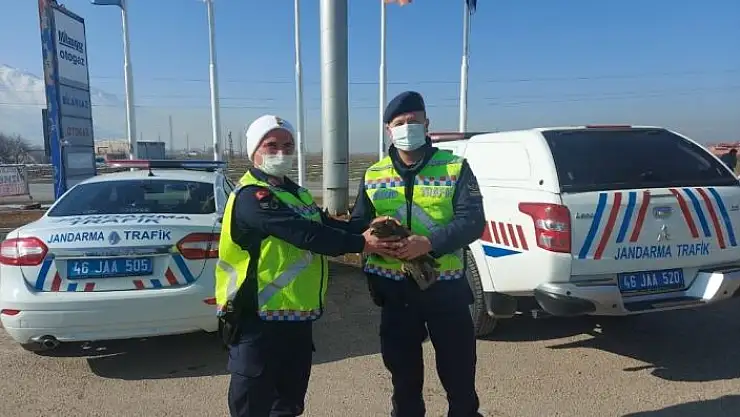 Elbistan İlçe Jandarma Komutanlığı jandarma trafik timleri, Elbistan-Çoğulhan karayolu üzerinde rutin devriye görevi esnasında, uçamayan bir kuş fark etti. Araçlarını durdurarak bölgeye giden jandarma trafik ekipleri, gözünden yaralanan kuşu muhafaza altına aldı. Jandarma trafik ekipleri, şefkat elini uzattıkları yaralı şahini, Doğa Koruma ve Milli Parklar Elbistan Şefliği görevlilerine teslim etti. Doğa Koruma ve Milli Parklar Elbistan Şefliği görevlileri, duyarlı davranışlarından dolayı jandarma trafik ekiplerine teşekkür etti.