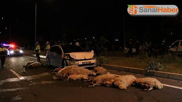 Malatya-Elazığ yolunda Yarış yapan 2 otomobil 30 koyunu telef etti