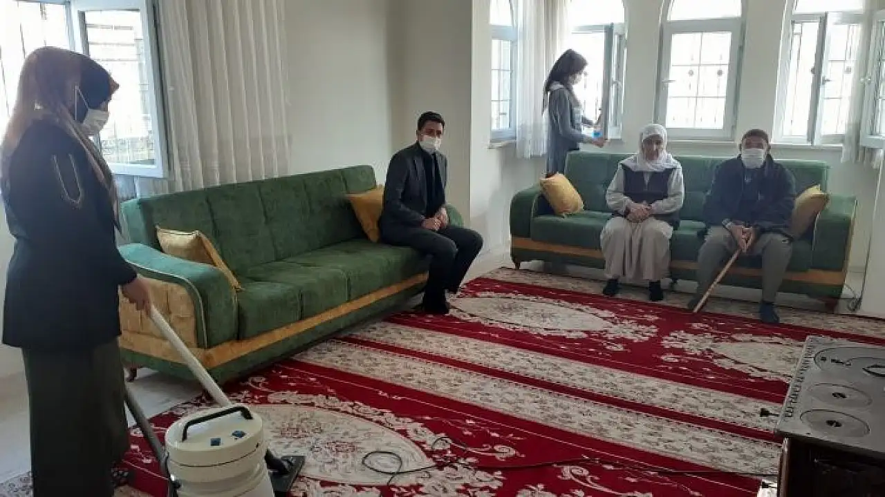 Evleri temizlemeye giden Ayten Tümay ise konuşmasında, "Bizler yaşlılarımızın evine gelip temizliklerini yapıyoruz 15 günde bir. Kaymakamlık bünyesinde yapıyoruz. Yaşlılarımızın hem duasını alıyoruz hem de onların temizliğini yapıyoruz. Bizlerde mutlu oluyoruz" diye konuştu.