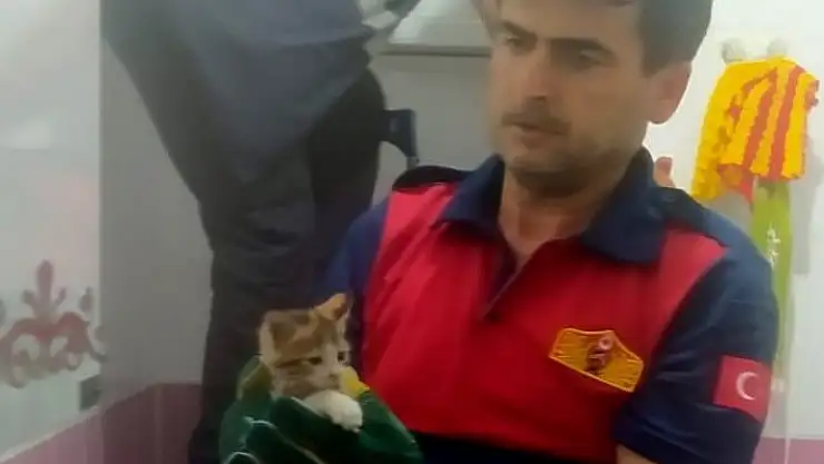'Yavru kediyi itfaiye kurtardı'