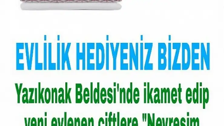 Elazığ´ın Yazıkonak Belde Belediyesi, yeni evlenecek çiftleri yalnız bırakmayarak çeyiz desteğinde bulunacak.