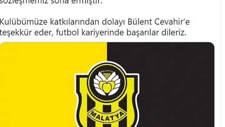 Yeni Malatyaspor, sosyal medya üzerinden yaptığı paylaşımla sözleşmesi sona eren Bülent Cevahir´e futbol hayatında başarılar diledi.