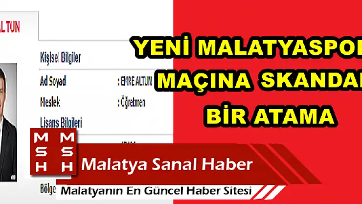 - YENİ MALATYASPOR MAÇINA SKANDAL BİR ATAMA
