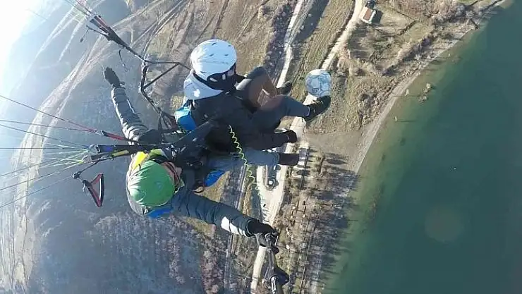 Elazığ Sportif Havacılık Kulübü´nün her hafta düzenlediği yamaç paraşütü etkinliğine katılan 32 yaşındaki özel eğitim öğretmeni Ümit Muslu, sıra dışı bir olaya imza attı. Muslu, Hazar Gölü manzarası eşliğinde 2 bin 700 rakımlı Hazarbaba Dağı´nda yamaç paraşütü yapmanın keyfine futbol topu ile renk ve aksiyon kattı. Hava sıcaklığının -5 derece olduğu anda uçuş yapan Muslu, yerden 350 metre yüksekte top sektirdi. O anlar aksiyon kamerası ile görüntülendi.