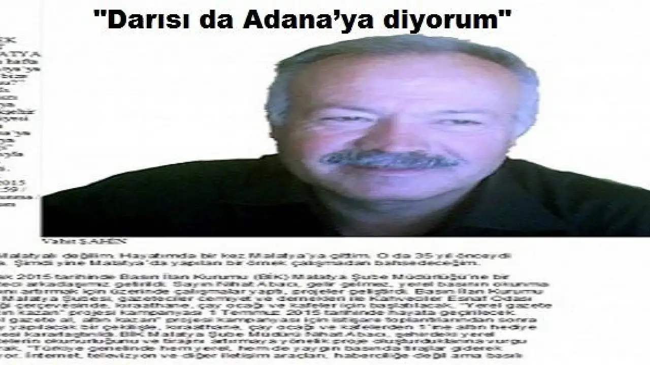 Şahin köşesinin son bölümünde, “Adana’nın üçte biri kadar olan bir ilde böyle bir kampanya neden Adana’da yapılmasın? Şimdi böyle bir proje Adana´da uygulanamaz mı? Bu konuda ÇGC Yönetimi başta olmak üzere, Basın İlan Kurumu ve diğer basınla ilgili STK’lar ve yerel basın mensupları bir araya gelemezler mi?