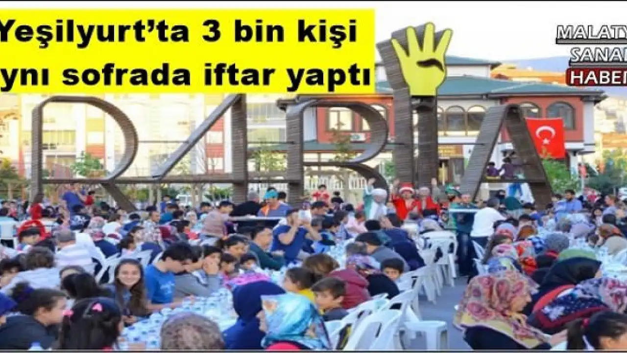 Yeşilyurt Belediyesi tarafından Rabia Parkında düzenlenen iftar programında 3 bin kişi aynı sofrada iftar yaparak iftar anının manevi havasını hep birlikte teneffüs etti.