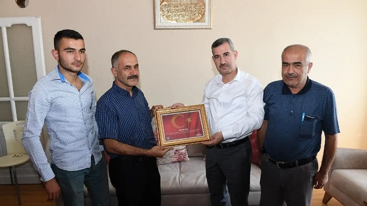 Mahalle Muhtarı Mehmet Balta’nın yer aldığı ziyarette aile fertleriyle sohbet eden Başkan Çınar, hediye paketini Ergün Erkişi’ye teslim ederken, baba Selver Erkişi’ye ise teşekkür plaketinin yanı sıra Yeşilkonak kursiyerleri tarafından yapılan tabloyu hediye etti.